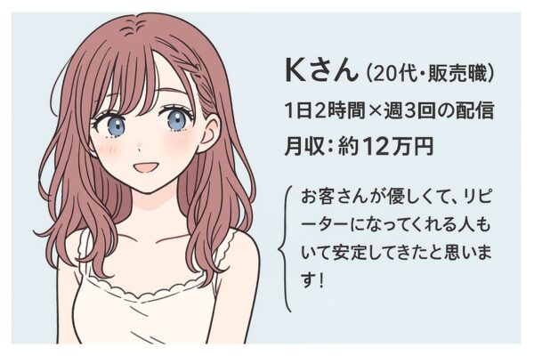 「パソコンも苦手で、最初の1ヶ月は試行錯誤。でも事務所の方にアドバイスをもらって演出を工夫することで、収入がどんどん伸びました」